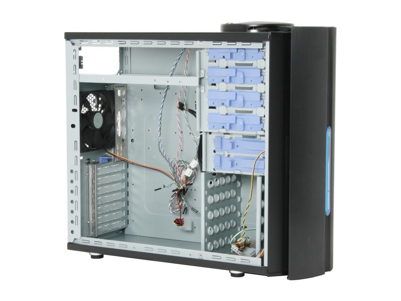 The Cooler Master Mystique case offers stylish design that lives up to its name! Sleek black exterior is constructed of sturdy cold-rolled steel, and features gear-driven bay doors, which conceal the external drives and front mesh vent with washable air filter, when not in use. Convenient top-mounted I/O panel allows easy access to 2 USB 2.0 ports, a FireWire connector, and audio jacks, even when doors are closed.