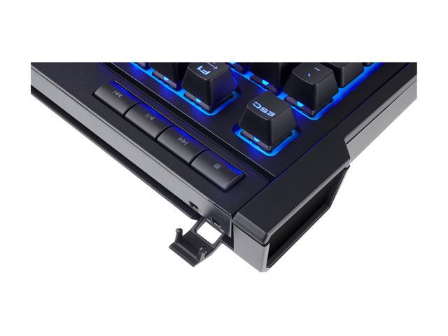 - Per-key, blue LED backlighting and large font keycaps deliver vibrant lighting effects