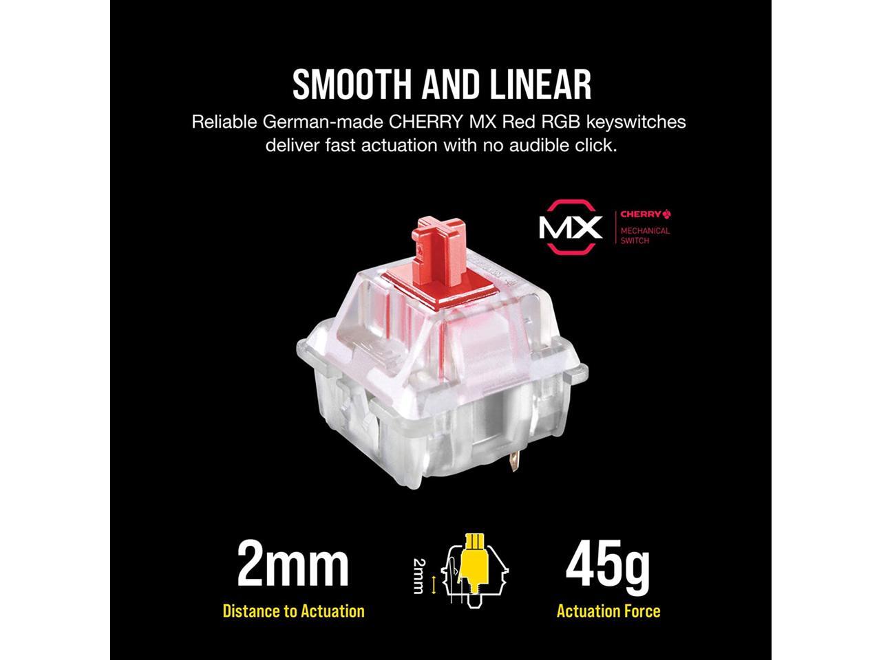 100% Cherry MX RGB Red key switches with gold contacts for fast, precise key presses