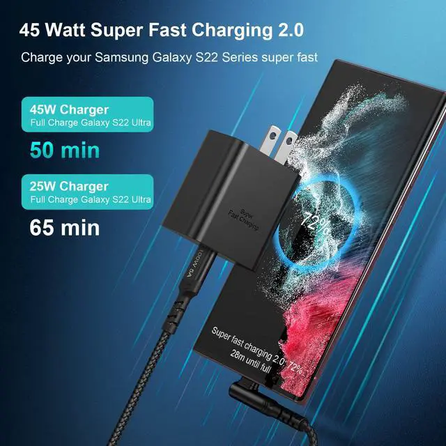 45 Watt charger with super fast charging 2.0 technology, your new Samsung galaxy S24Ultra/S23FE can get a high speed charging with less waiting time. Also works great on a wide range of Notebooks.