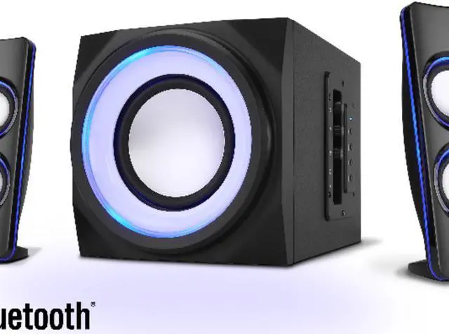The CA-3712BT is the perfect mood setting audio system great for enhancing music movies and parties - particularly in the dark. Bluetooth capability gives you spontaneous ability to play and control the music from any bluetooth device in the room. Significantly enhance the sound from your PC with Cyber Acoustics 2.1 Speaker System 2.1 speaker system delivers intense and powerful acoustics for your music movies and video gamesRoute your music to your tablet iPad smartphone or PC with these Bluetooth compatible Speaker System