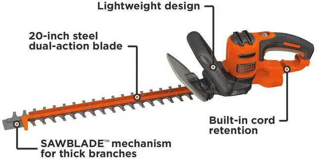 Features and Benefits of the BLACK+DECKER 20-Inch Electric Hedge Trimmer with Saw