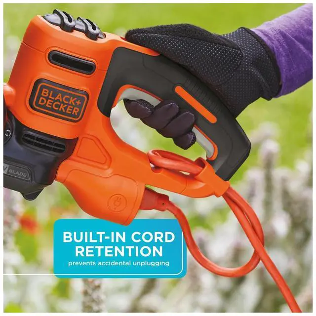 Trim your hedges without accidental unplugging thanks to the built-in cord retention mechanism.