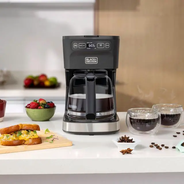The 12-Cup BLACK+DECKER CAFÉCRAFT with Vortex Showerhead Technology and programmable controls makes busy mornings and weekend gatherings effortless.