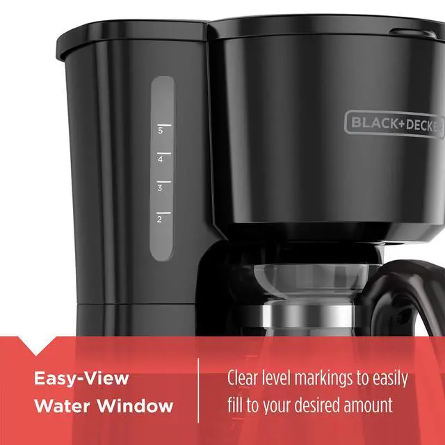 5-Cup Coffee Maker with On/Off Switch, Sneak-A-Cup Feature, and Easy-View Water Window, Black