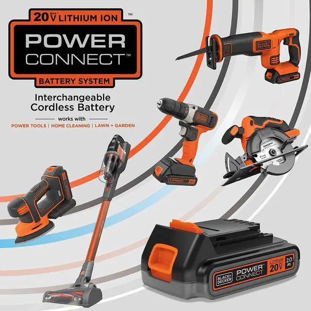The 20V MAX* POWERCONNECT BATTERY SYSTEM is an interchangeable battery system. You can use one battery for multiple different tools within the BLACK+DECKER family of products.