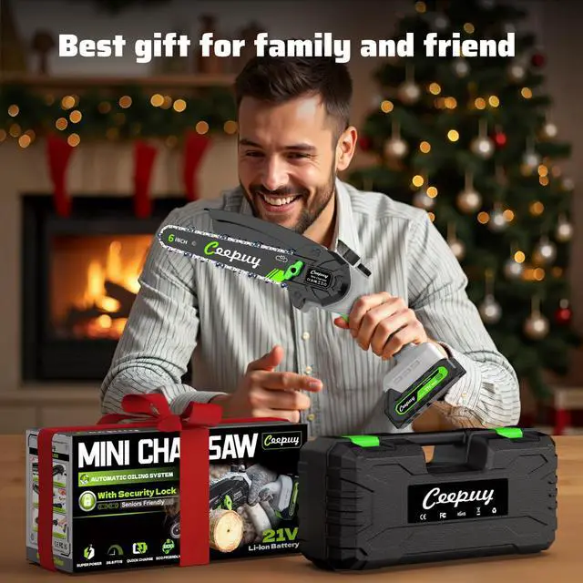 Lightweight,Portable & Female FriendlyThe Ceepuy mini chainsaw is designed with a lightweight and portable slim body, making it easy to control with one hand and access to narrow areas. Its compact design is a great fit for the elderly and women. the fully charged battery ensures long-term use without causing strain on the wrist or arm. You can confidently trim those hard-to-reach branches from a ladder, enjoying a balanced and stable cutting experience without any wobbles.