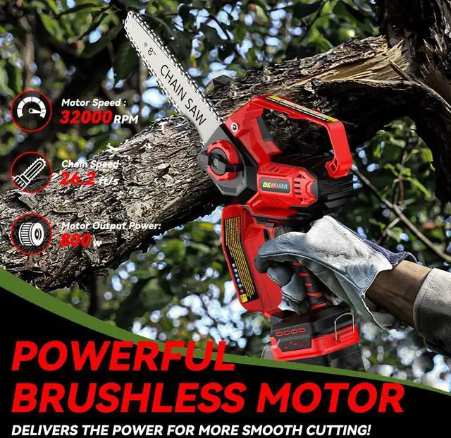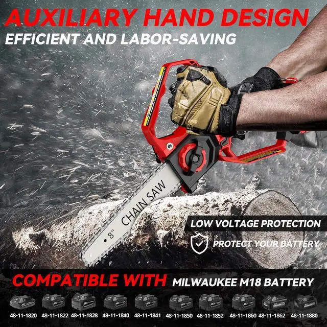 The chainsaw has a built-in 800W brushless motor with an idling speed of up to 18000RPM, which brings powerful cutting kinetic energy to help you complete the cutting work efficiently!