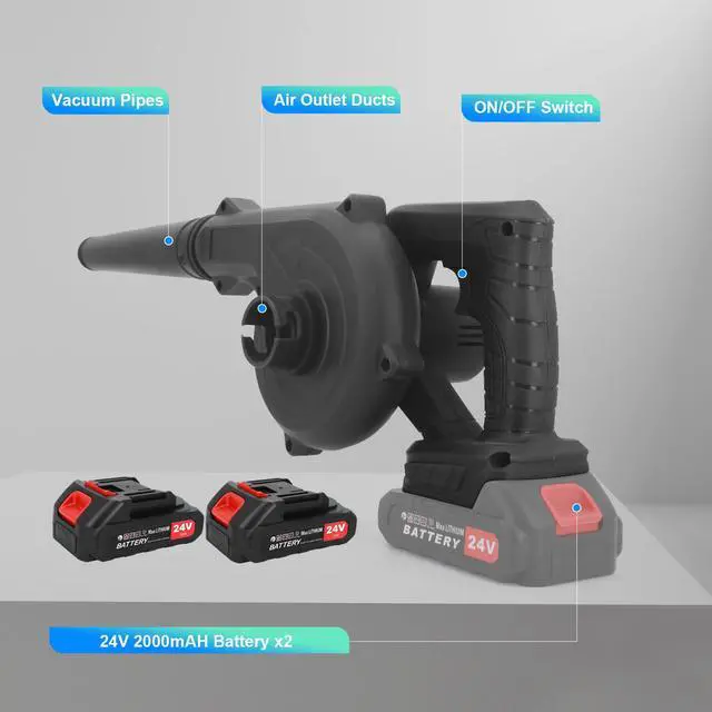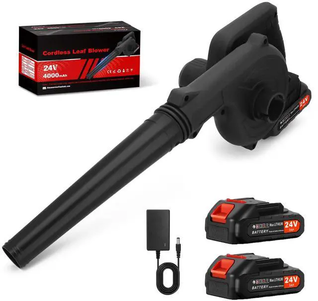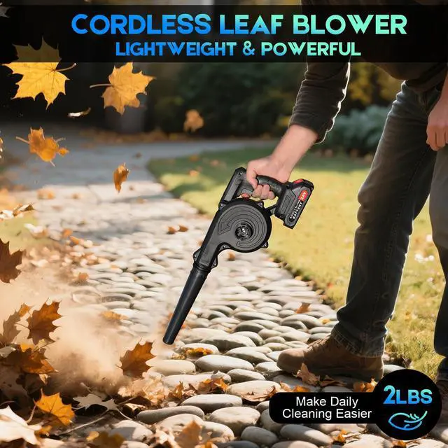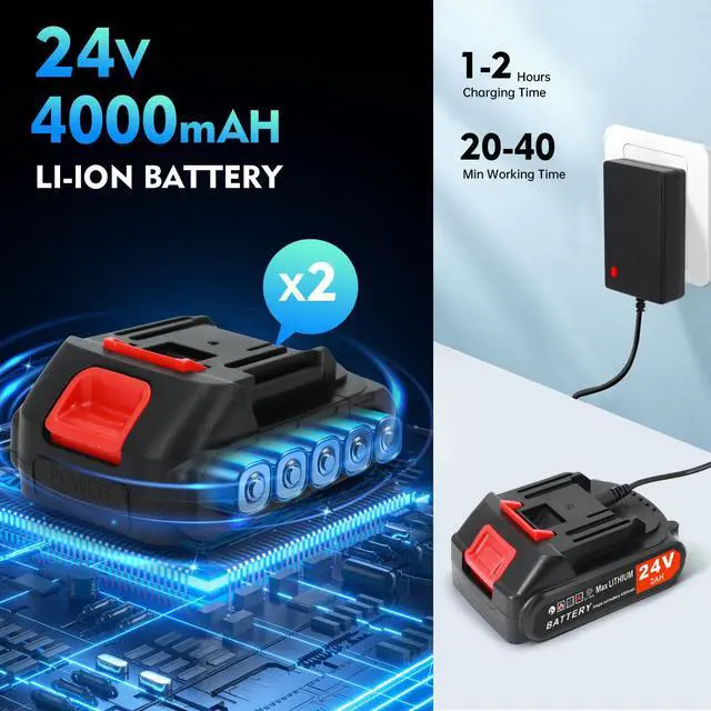 Extended Runtime 2PCS 4000mAh Battery: This leaf blower comes equipped with 2 removable 24V-4000mAh batteries and fast charger, providing 40 minutes of continuous high-speed operation. Smart protection circuitry features automatic low-voltage shutdown and over-current prevention to safeguard battery life and ensure uninterrupted workflow.