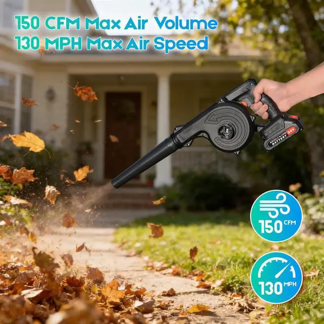 Leaf Blower Cordless, 2 x 24V 2.0Ah Battery and Charger, 150CFM 130MPH Electric Cordless Leaf Blower with Brushless Motor, Handle Electric Blower Cleaner