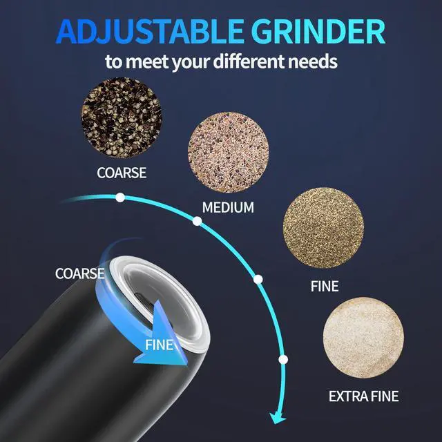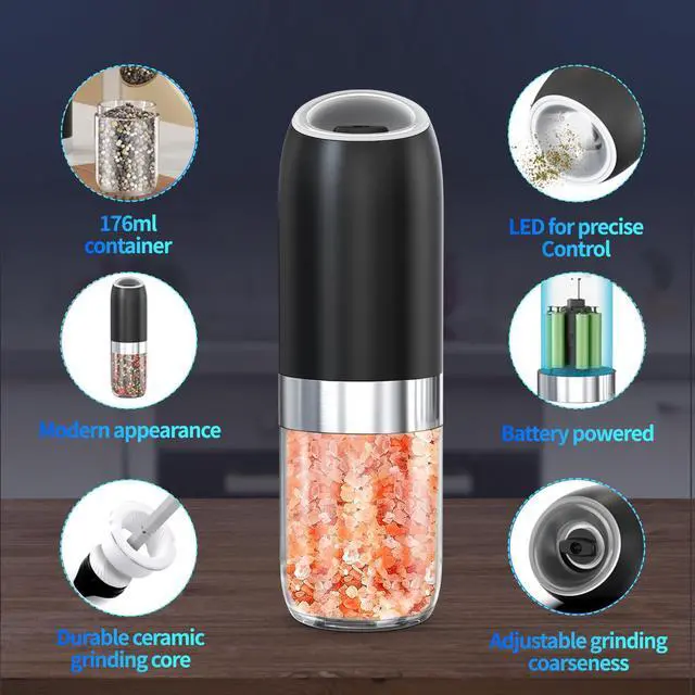 Salt&Pepper Grinder Set Designed For Hand. Adjustable Coarseness, Washable Large Chamber Sturdy Durable Elegant, For Home Kitchen BBQ