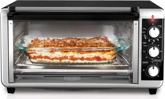 The Black + Decker TO3250XSB Extra-Wide Toaster Oven will simplify large baking tasks. Its extended interior fits an entire 13”x9” pan, so you can bake lasagna, brownies, and even 12” frozen pizzas in no time. You won’t have to wait around for your large oven to preheat anymore, just set the correct temperature and time and you’ll be baking in minutes with four different functions: bake, broil, toast, and keep warm. Advanced convection technology circulates air within the oven for fast and even results while baking. Plus, the external crumb tray is easy to slide in and out, making cleanup a breeze.