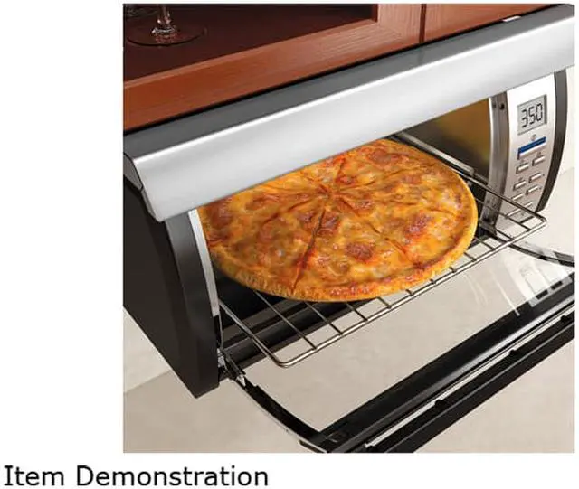 Digital Display- Modern digital control panel with LED light shows temperature and time in an easy to read display. Perfect for Two - Fits up to 4 slices of bread or a personal pizza. Great for smaller serving size needs. Save counter space with easy under the cabinet mounting. 4 Slice or 9" Pizza Capacity. LED Display and Digital Controls. One Touch - Toast, Bake & Keep Warm Controls. 30 Minute Timer. Drop-Down Crumb Tray. Built in Cord Storage.