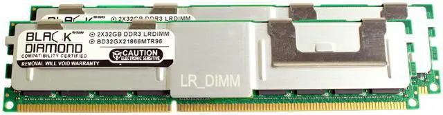 Black Diamond Memory 64GB (2 x 32GB) ECC Load Reduced DDR3 1866 (PC3 14900) Server Memory Model BD32GX21866MTR96