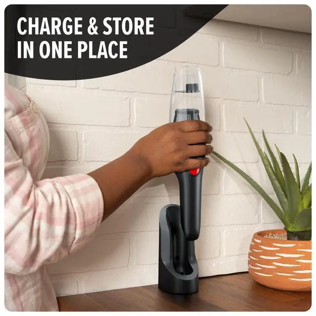 Sleek and compact, conveniently mount the Grab & Go+ Hand Vacuum to the wall or store on the countertop when not in use.