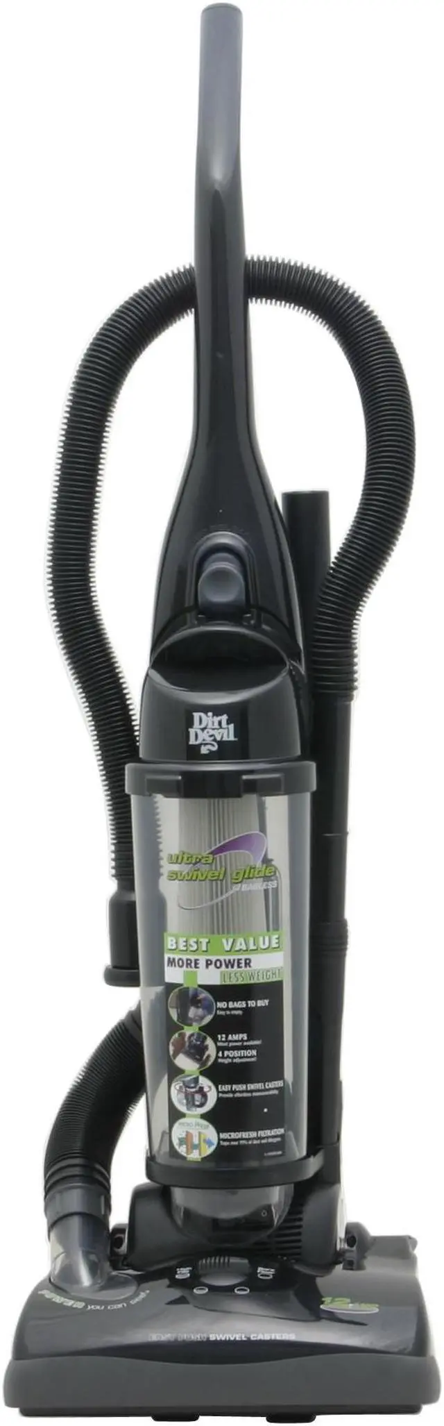 LightweightThe lightweight Dirt Devil M085805 Ultra Swivel Glide bagless vacuum cleaner provides a great solution for people who may have some difficulty in maneuvering a heavier vacuum cleaner around, and is especially convenient for taking from room to room, up and down stairs.