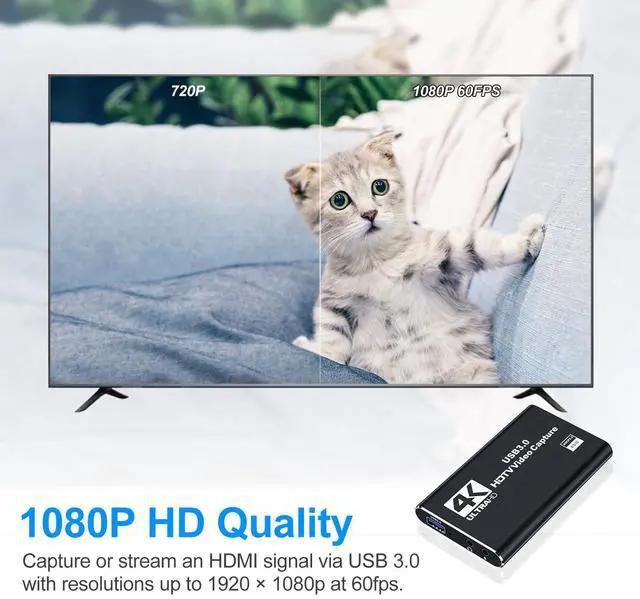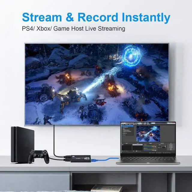 Stunning, Lag-Free PerformanceDelivers 4K@60fps resolution and 1080p@60fps video signals through USB 3.0 interface for ultra-smooth, stutter-free visuals. Compatible with cameras, PS4, OBS, and other devices.
