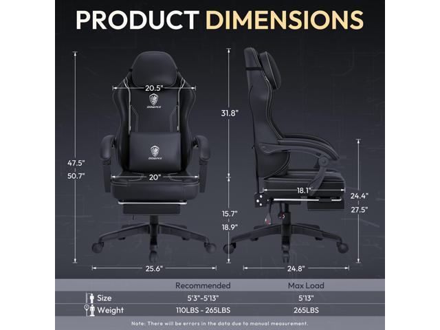 Dowinx Gaming Chair with Pocket Spring Cushion, Ergonomic Computer Chair with Footrest and Lumbar Support for Office or Gaming, Black