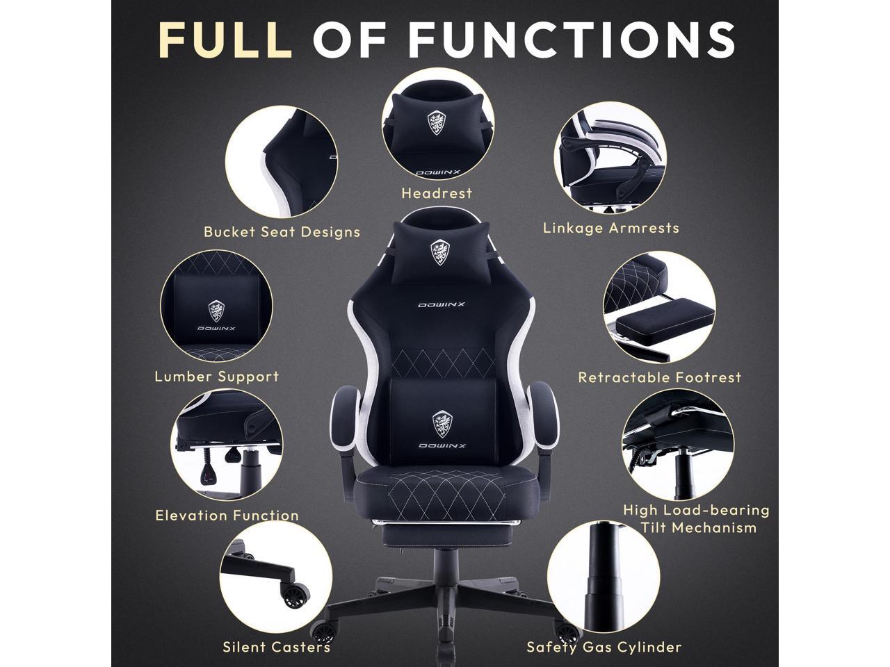 - Highly Breathable Fabric: Stay cool and comfortable with the Dowinx gaming chair's self-developed breathable mesh fabric. With advanced quilting, this material offers twice the breathability of standard fabrics, ensuring comfort even on the hottest days. Its high resilience provides robust support, helping you remain focused and productive.