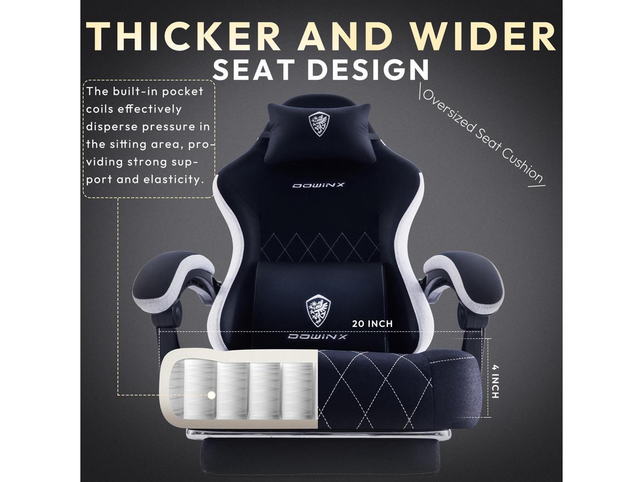 - Sofa-Level Comfort with Pocket Springs: Experience unparalleled comfort with the Dowinx gaming chair's advanced pocket spring cushion, designed to provide the luxurious feel of a sofa. The individual springs distribute pressure evenly, enhancing support and ensuring an ergonomic fit, perfect for those long hours of gaming or work.