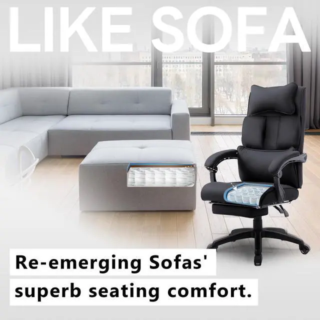 Comfortable Sitting Experience: This seat cushion of executive office chair is composed of pocket springs and shaped foam, designed to offer the luxurious comfort of a sofa, it smartly adapts to your body's movements, providing targeted support. Additionally, the carefully engineered cushioning in the armrests provides a plush resting place for the arms. Whether you're working, studying, or gaming, it ensures a comfortable experience for you.