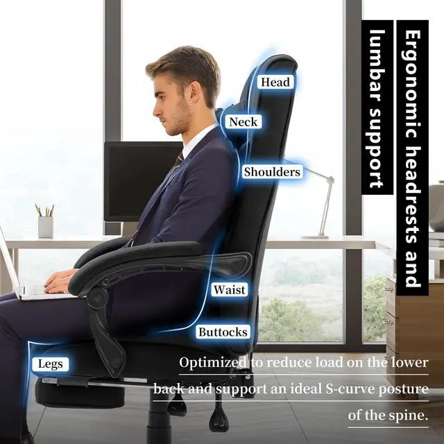 Multi-function Design: This executive computer chairs include swivel and 90°-145° backrest tilt, headrests, adjustable lumbar support, and integrated controls for easy adjustment. These features provide convenience and flexibility to you, allowing you to adapt the chair to your specific needs. Ergonomic adjustments promote better comfort, productivity, and overall well-being.
