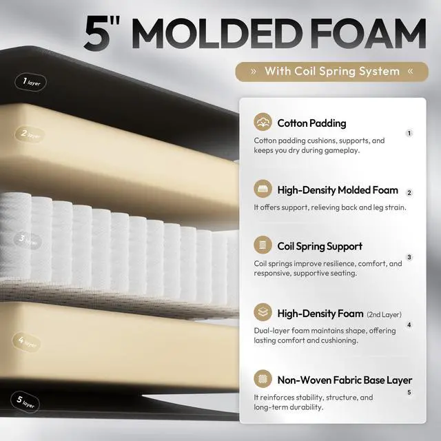 Sitting Comfort Like Sofa: This seat cushion of gaming chair is composed of pocket springs and shaped foam, allowing for the same elasticity and comfort as a sofa. The springs better distribute the pressure on the seat cushion for better ride comfort and more ergonomic.