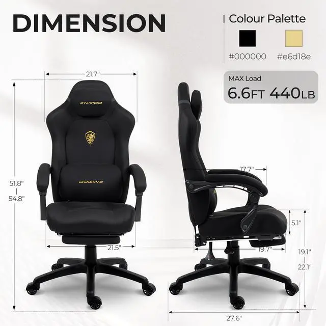 Fully Adjustable Gaming Chair for Big & Tall UsersExperience ultimate comfort with our extra-wide 21.5" seat and tall 32.7" backrest - making this one of the most spacious gaming chairs for adults. Featuring 3-inch adjustable lumbar pillow, customizable armrests and retractable footrest, this game chair adapts to any body type (5'2" to 6'5") while supporting up to 440 lbs with ease