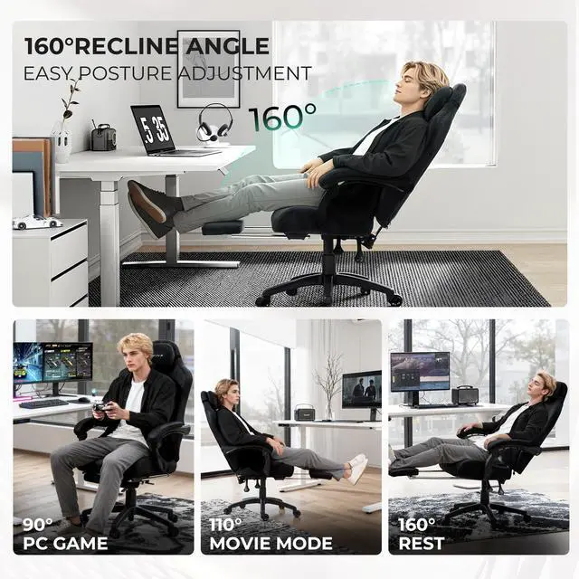Fully Adjustable Gaming Chair for Big & Tall Users: Experience ultimate comfort with our extra-wide 21.5" seat and tall 32.7" backrest. Featuring 3-inch adjustable lumbar pillow, customizable armrests and retractable footrest, this game chair adapts to any body type (5'2" to 6'5") while supporting up to 440 lbs with ease.