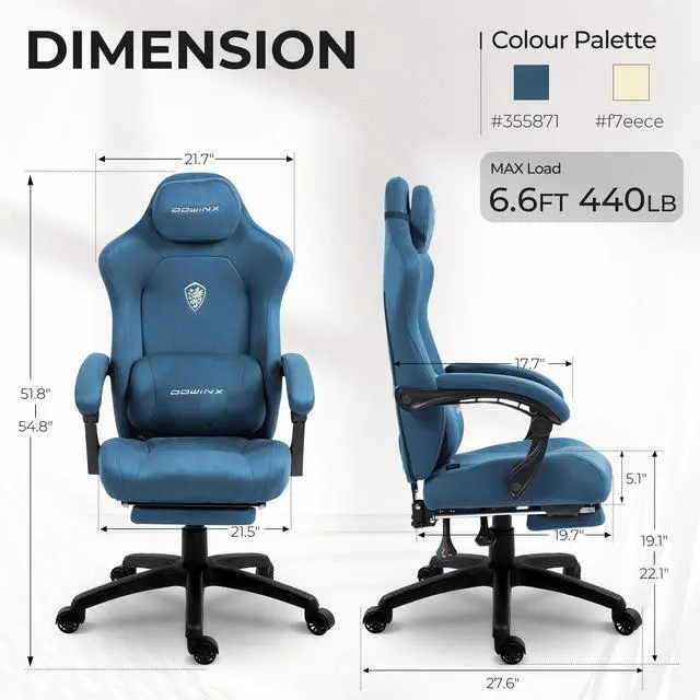 Fully Adjustable Gaming Chair for Big & Tall UsersExperience ultimate comfort with our extra-wide 21.5" seat and tall 32.7" backrest - making this one of the most spacious gaming chairs for adults. Featuring 3-inch adjustable lumbar pillow, customizable armrests and retractable footrest, this game chair adapts to any body type (5'2" to 6'5") while supporting up to 440 lbs with ease