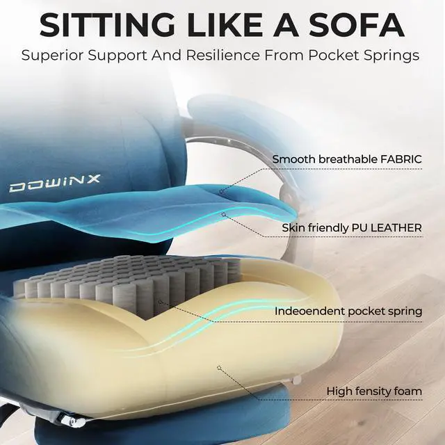 Plush, Form-Fitting Gaming Chair with Cloud ComfortSink into our extra-thick seat cushion featuring high-density foam and built-in pocket spring system in this gaming chair with footrest. Enjoy superior pressure relief and lasting support during extended gaming or work sessions.