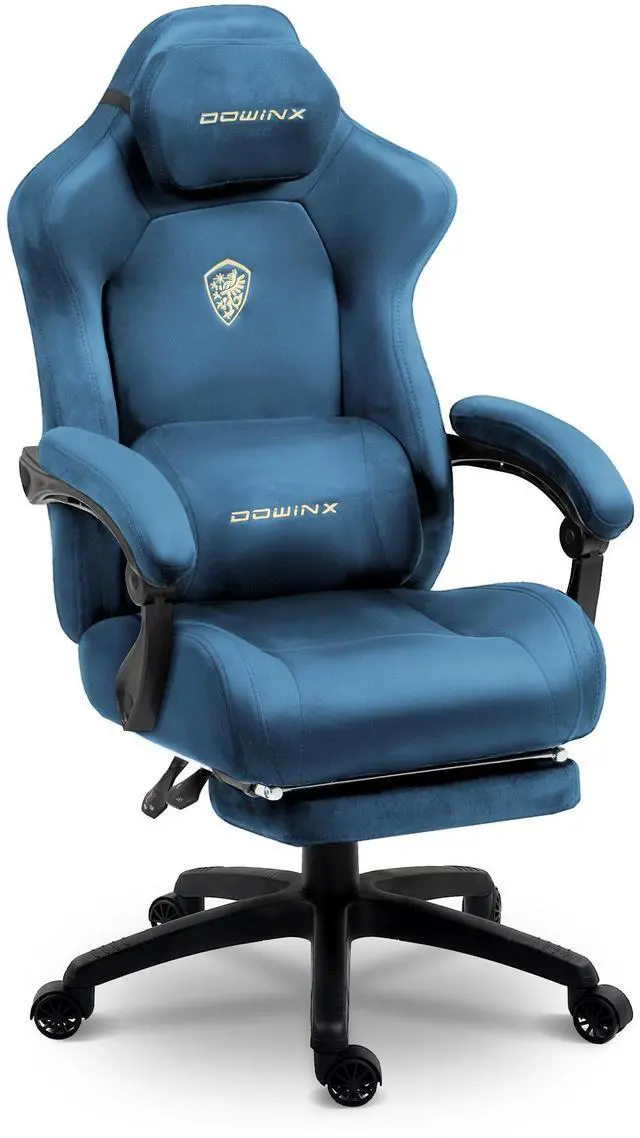 Dowinx Gaming Chair Big and Tall, Suede Fabric Game Chair with Pocket Spring Cushion, High Back Ergonomic Office Chair with Footrest for Adults 440LBS, Blue