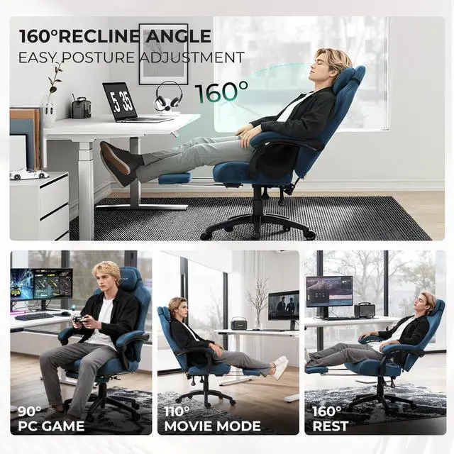 Fully Adjustable Gaming Chair for Big & Tall UsersExperience ultimate comfort with our extra-wide 21.5" seat and tall 32.7" backrest. Featuring 3-inch adjustable lumbar pillow, customizable armrests and retractable footrest, this game chair adapts to any body type (5'2" to 6'5") while supporting up to 440 lbs with ease.