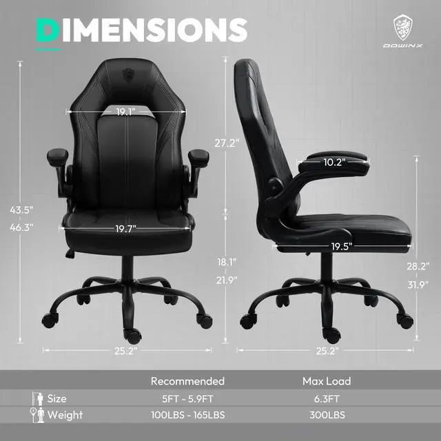 Dowinx Gaming Chair, Breathable PU Leather Gamer Chair with Pocket Spring Cushion, Swivel Desk Chair with adjustable seat and armrests, Ergonomic Computer Chair with reclining backrest, Black