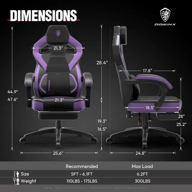 Ergonomic Design with Additional Features: The Dowinx gaming chair is equipped with an oversized headrest for exceptional neck and head support. The built-in massage function enhances relaxation during extended playtime or work sessions, while the innovative storage pouch keeps your gaming area organized by holding games, books, and accessories.