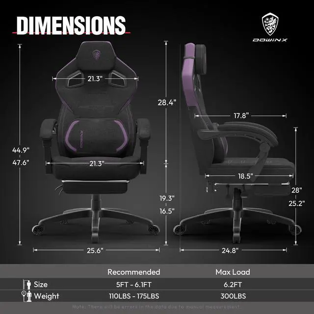 Ergonomic Design with Additional Features: The Dowinx gaming chair is equipped with an oversized headrest for exceptional neck and head support. The built-in massage function enhances relaxation during extended playtime or work sessions, while the innovative storage pouch keeps your gaming area organized by holding games, books, and accessories.