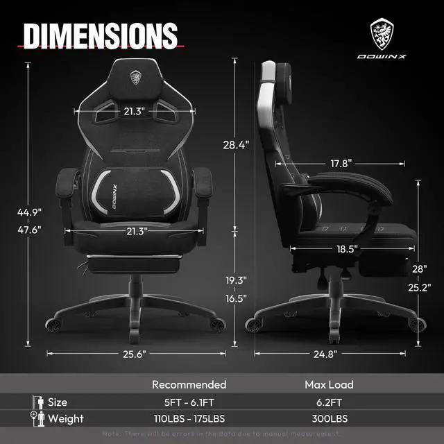 Ergonomic Design with Additional Features: The Dowinx gaming chair is equipped with an oversized headrest for exceptional neck and head support. The built-in massage function enhances relaxation during extended playtime or work sessions, while the innovative storage pouch keeps your gaming area organized by holding games, books, and accessories.
