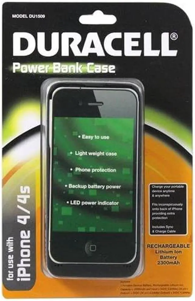 - 1X Duracell Du1509 2,300Mah Powerbank Case compatible with iPhone® 4/4S