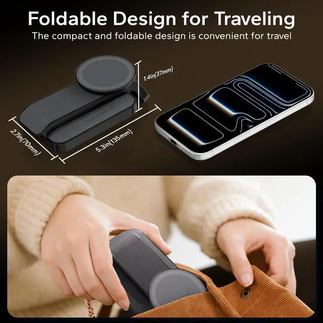 This charging station is easy to carry or travel. Its size is 5.4*2.7*1.5 inches and the weight is 7.2 oz.