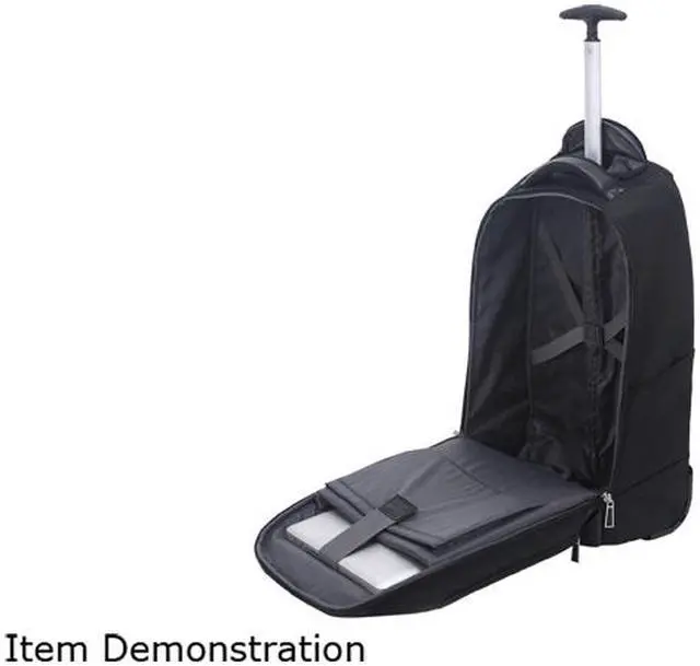 The variety of cases and totes vary from backpacks, cross-body bags, pocket clip-ons, briefcase styles and more. Take a look at the features for Eco Style Roller Laptop Backpack. Length: 21", Width: 17", Color: Black.