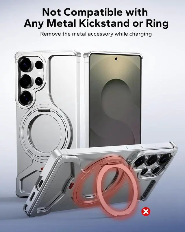 Won't work with: credit cards, metal case or rings, too thick cases.