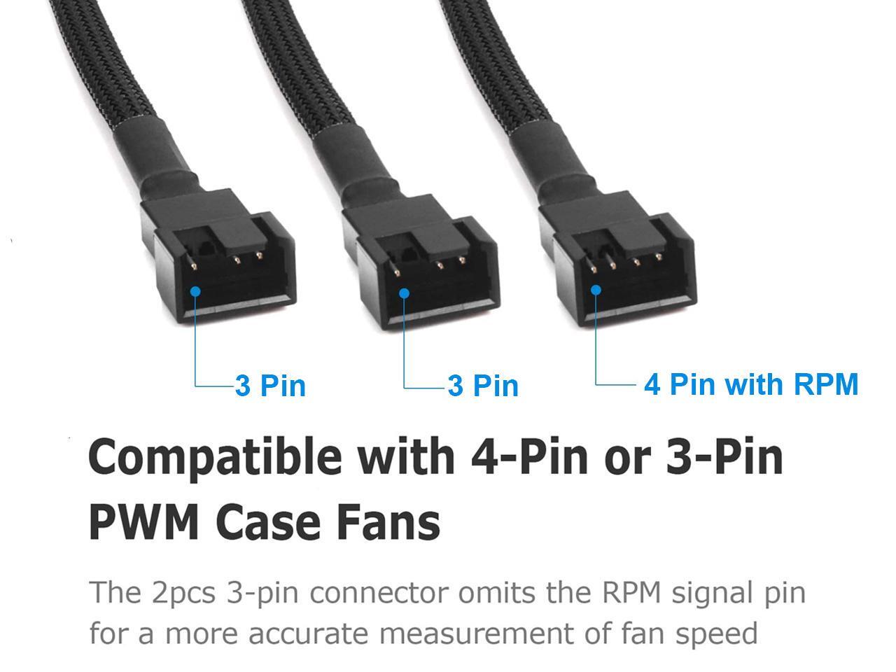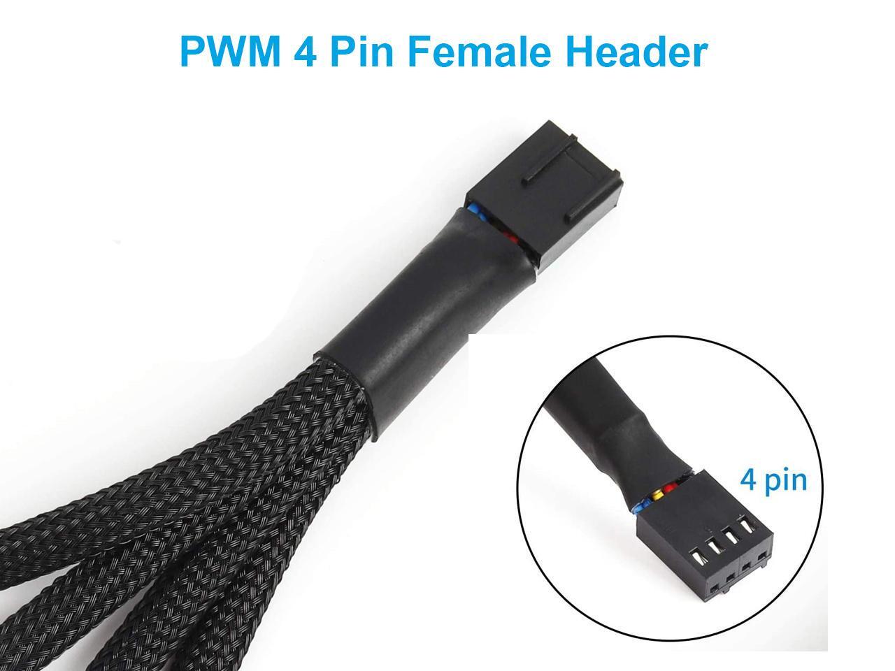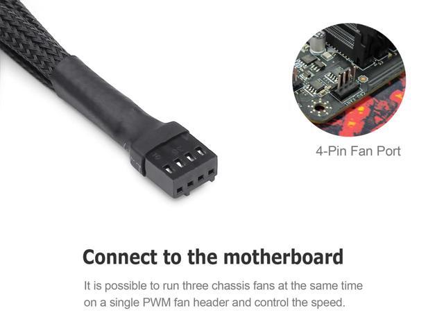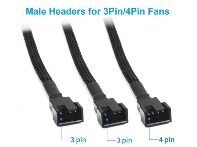 PWM Fan 4 Pin to 3Pin/4Pin Power Splitter Cable, Motherboard CPU SYS Fan Header to 3 Ports Internal Power Hub-Sleeved Black,10 inches,