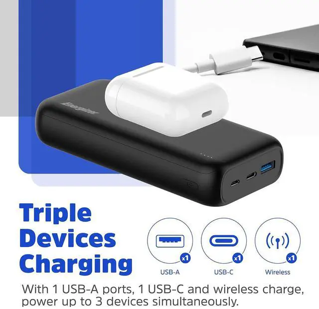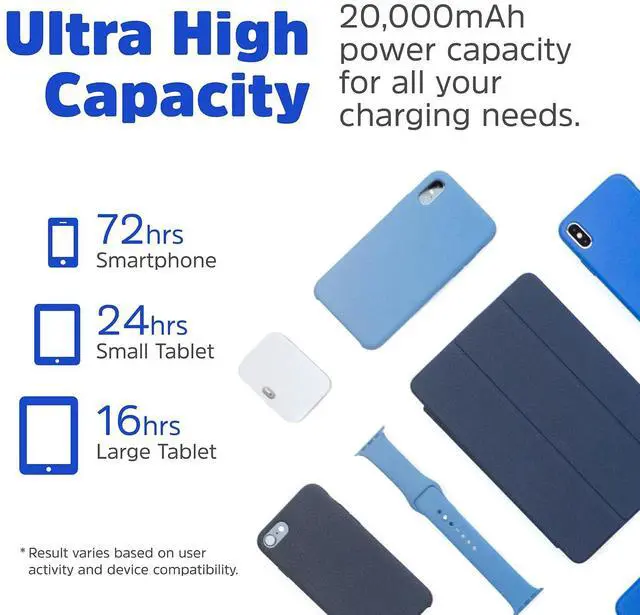 With a 20,000mAh capacity, the Energizer power bank extends smartphone usage by 72 hours, small tablets by 24 hours and 16 hours for a large tablet.
