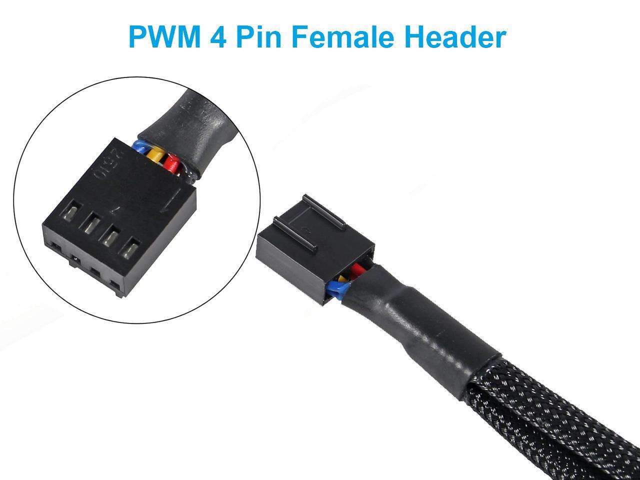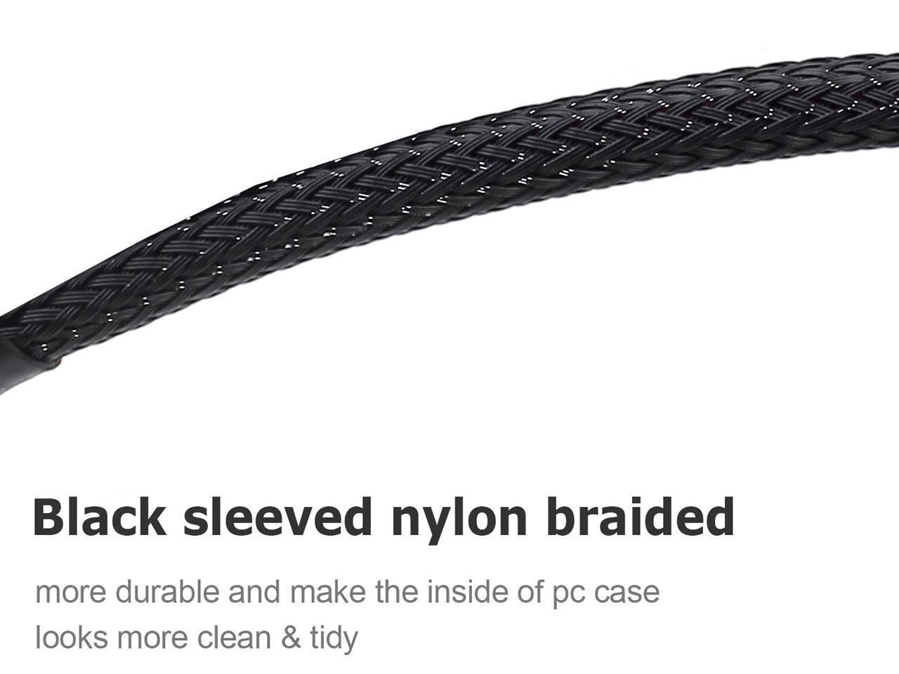 Black Net Jacket Sleeved 1 to 2 PWM Fan 4-pin Power Splitter Cable, Motherboard CPU SYS Fan Header to 2 Ports Internal Power Hub-Sleeved Black,10 inches,3-Pack