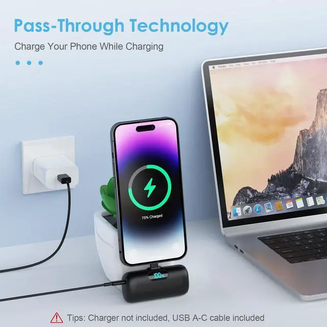 Pass-through Charging Technology This portable charger with pass-through charging technology, it can charge your iPhone while recharging the power bank.