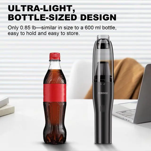Mini Car Vacuum Cleaner for Cars, Homes & Pet Owners: This cordless handheld vacuum is ideal for car interiors, stairs, furniture, pet hair, and small apartmentsanywhere you need quick, quiet, everyday cleaning without a bulky machine. Tired of dragging out a heavy vacuum just to clean a few crumbs or dust on your desk? The FEROOD 4-in-1 mini handheld vacuum is designed to live in your car or on your desk, so its always ready for small messes. Its ultra-lightweight, bottle-sized body and modern look make it a compact cleaning helper youll actually want to keep within reach. This upgraded cordless vacuum combines four functions in one tool: vacuuming, blowing, inflating, and pumping. Use it to tidy car seats and floor mats, blow dust from keyboards and vents, inflate small items, or pump air out of storage bags. The 6.5 kPa suction and 36,800 RPM high-speed motor are built for everyday tasks like crumbs, pet hair, and dust in tight spaces. To keep your environment peaceful, the motor is acoustically optimized to run at about 60 dB. You can clean without waking a sleeping baby, scaring pets, or disrupting coworkers in a quiet office. At only 0.85 lb and similar in size to a 550 ml bottle, it fits easily into cup holders, center consoles, drawers, and shelves for convenient storage. With up to 18 minutes of runtime and USB-C charging compatibility, you can power it from wall adapters, car chargers, or power banks at home or on the go. The washable HEPA filter and dust cup are simple to remove, rinse, and reuse, and the vacuum includes 2 filters so you can keep one ready while the other dries. Whether youre a car owner, pet parent, or someone who likes a tidy workspace, this mini handheld vacuum helps you clean smarter, faster, and quieter.