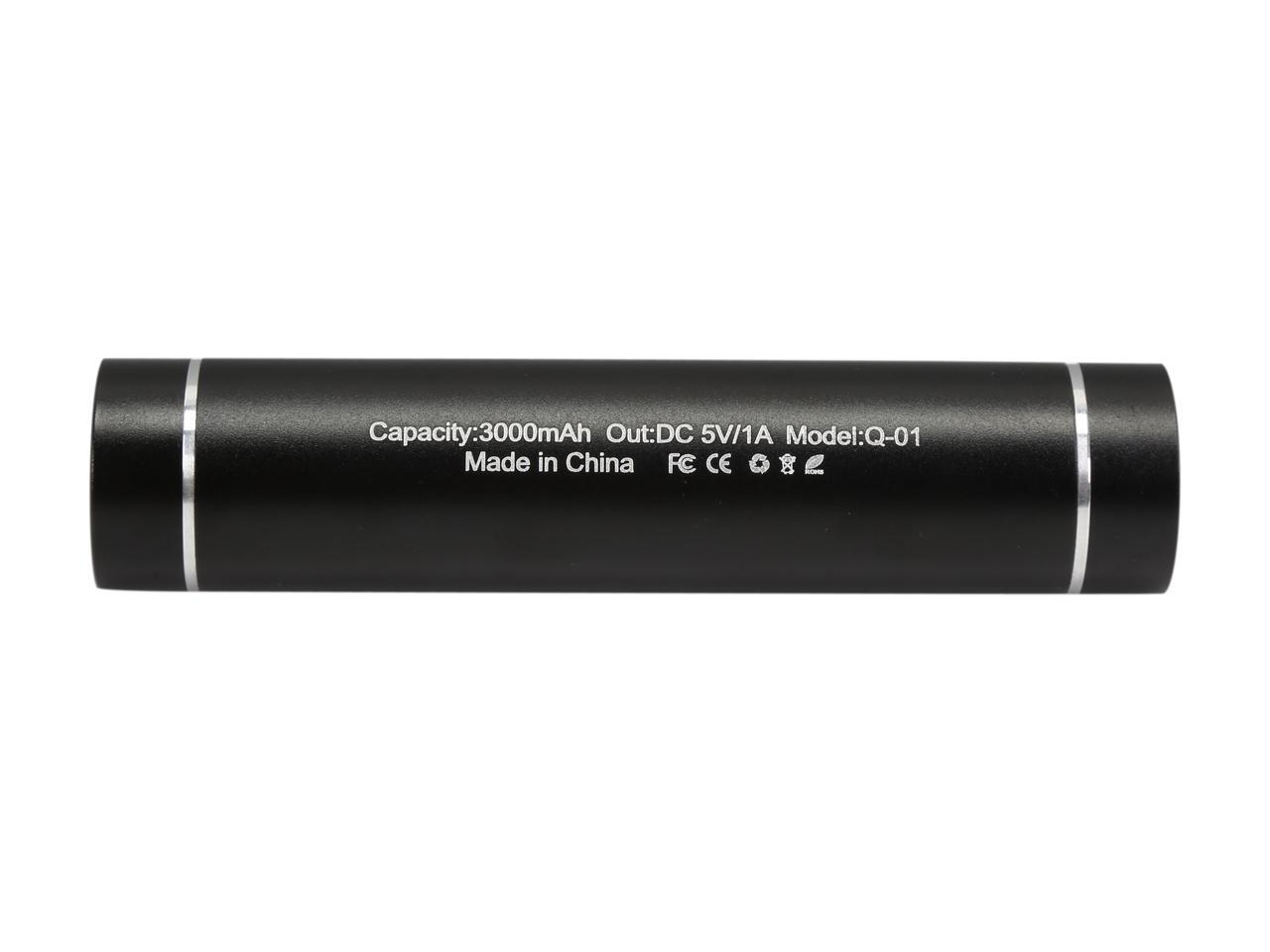 FREMO Q-01 Black 3000mAh External Battery Pack Power Bank (Built-in LED Flash Light with High/Low/Strobe Modes) for iPhone 6, 6 plus, 5S, Samsung, HTC and other USB-Charged devices