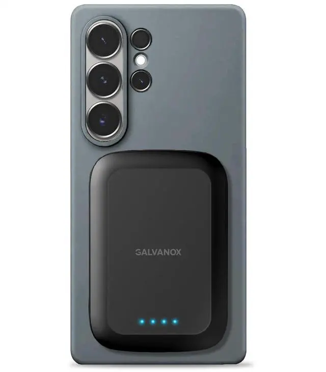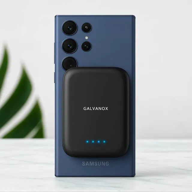 Galvanox Magnetic Power Bank for Samsung Phones (15W) Wireless Charging Battery Pack for Android, Galaxy S24 S25 Plus, Ultra (Compatible with MagSafe Case Required) 5000mAh Portable Charger, Black