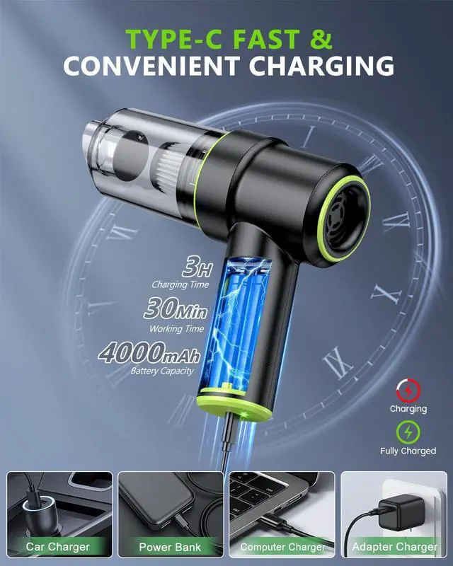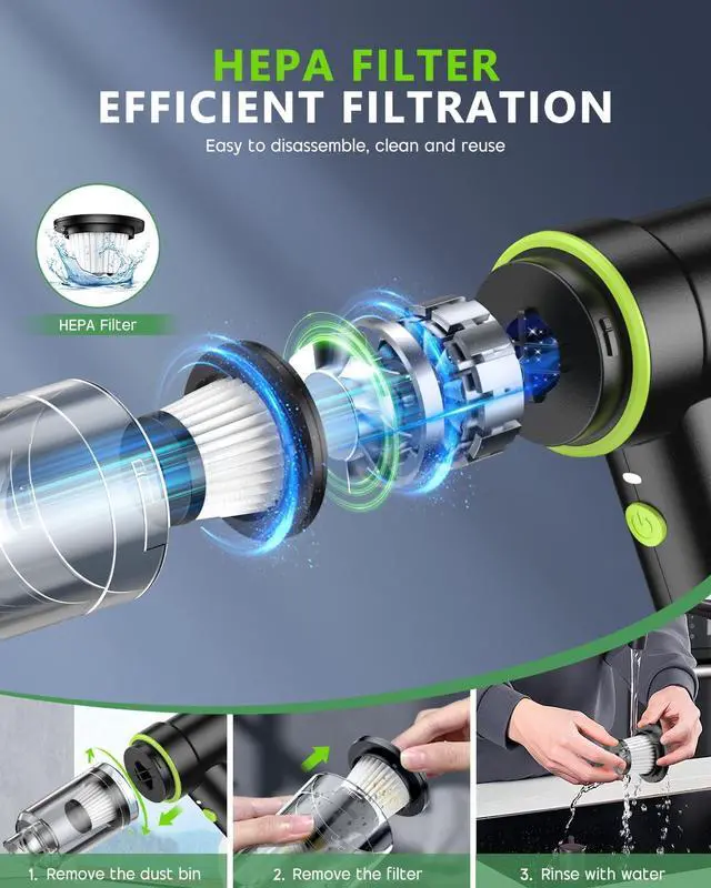 Car Cleaning: Quickly remove dust and debris from seats, dashboard, and tight corners to keep your car easily clean.