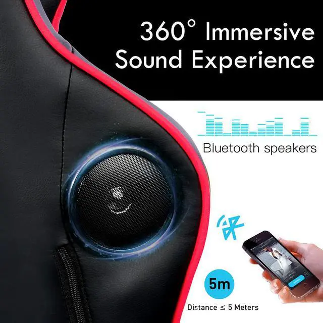 MUSIC GAMING CHAIR: Originally designed with Bluetooth speakers. Connect it to your smartphone, tablet or other Bluetooth-enabled devices, enjoy your favorite tunes wirelessly. The two speakers on the back deliver remarkable stereo sound out loud in clear, full audio.